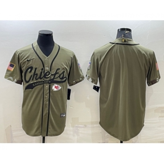 Men's Kansas City Chiefs Blank Olive Salute to Service Cool Base Stitched Baseball Jersey
