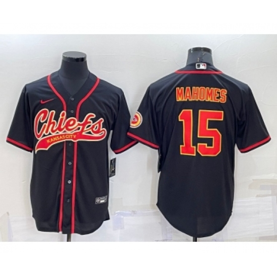 Men's Kansas City Chiefs Patrick Mahomes Black Stitched Cool Base Nike Baseball Jersey