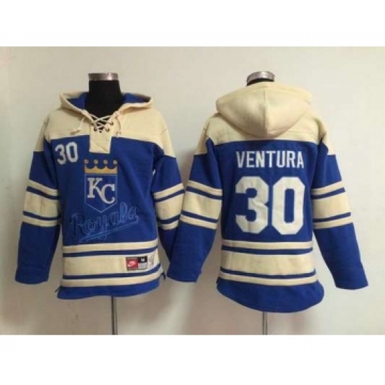 >Men's Kansas City Royals #30 Yordano Ventura Blue Hoodie