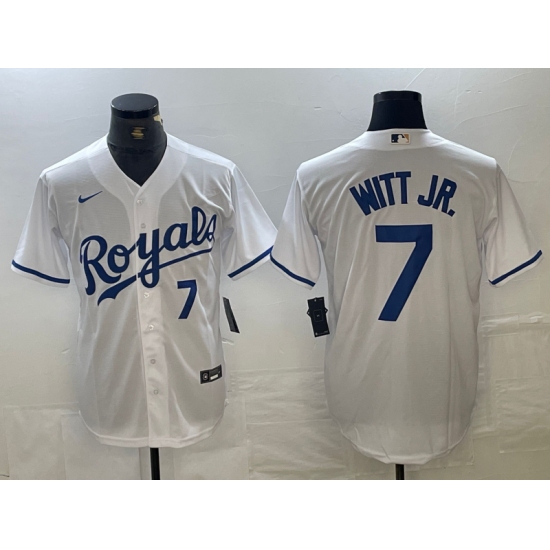 Men's Kansas City Royals #7 Bobby Witt Jr Number White Cool Base Stitched MLB Jersey1