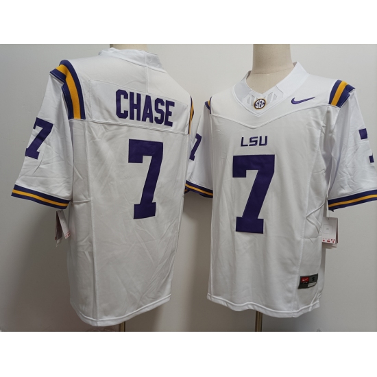Men's LSU Tigers #7 JaMarr Chase White FUSE College Stitched Jersey