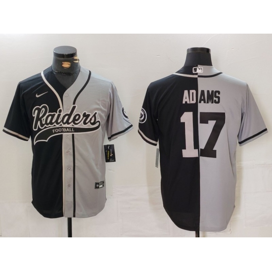 >Men's Las Vegas Raiders #17 Davante Adams Grey Black Split Cool Base Stitched Baseball Jersey