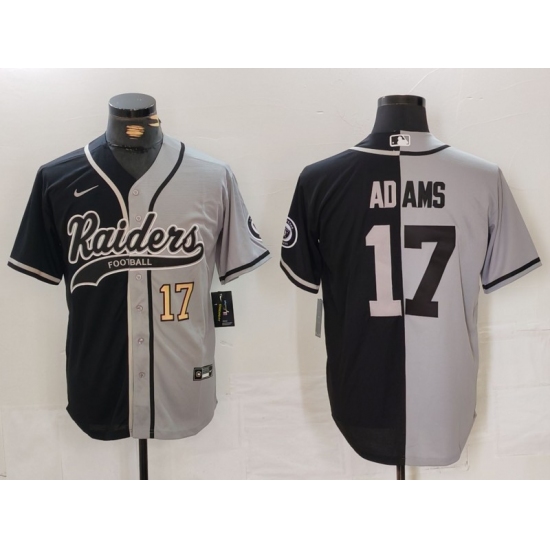 Men's Las Vegas Raiders #17 Davante Adams Number Grey Black Split Cool Base Stitched Baseball Jersey