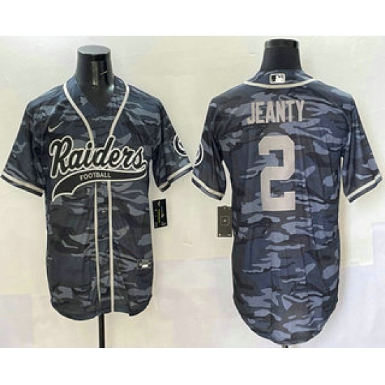 Men's Las Vegas Raiders #2 Ashton Jeanty Grey Camo With Cool Base Stitched Baseball Jersey