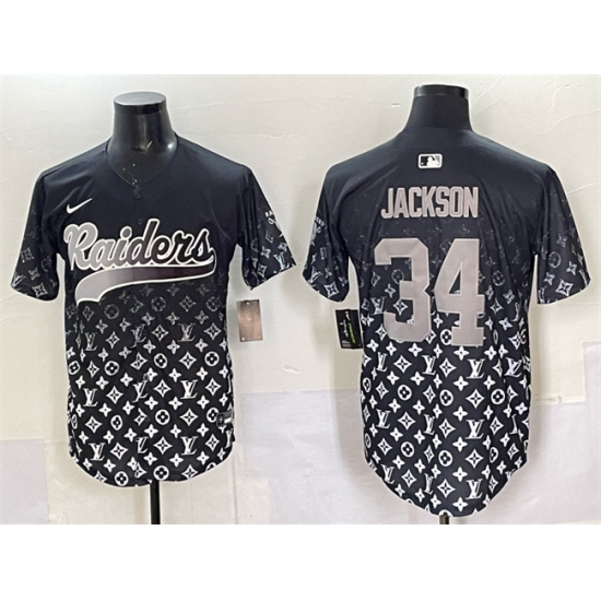 >Men's Las Vegas Raiders #34 Bo Jackson Black Limited Stitched Baseball Jersey