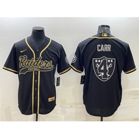 Men's Las Vegas Raiders #4 Derek Carr Black Gold Team Big Logo With Patch Cool Base Stitched Baseball Jersey