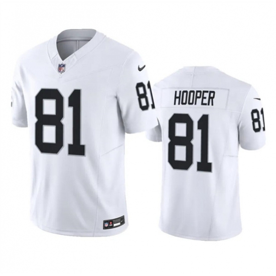 >Men's Las Vegas Raiders #81 Austin Hooper White 2023 F.U.S.E. Football Stitched Jersey