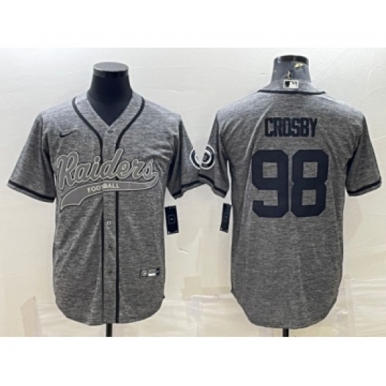 Men's Las Vegas Raiders #98 Maxx Crosby Gray With Patch Cool Base Stitched Baseball Jersey