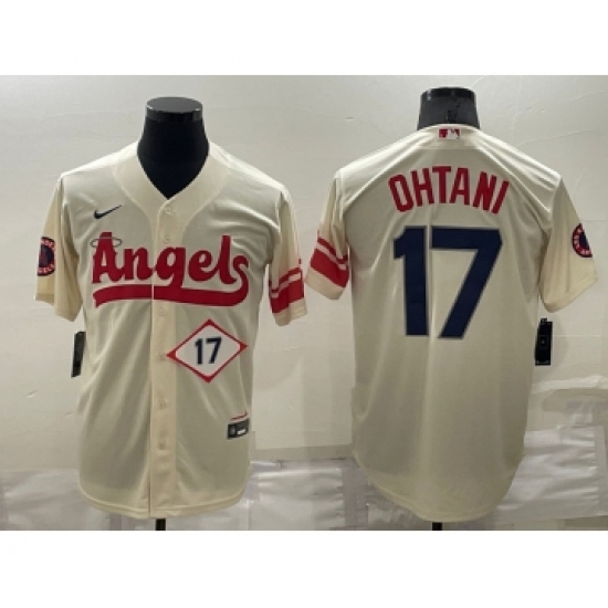 Men's Los Angeles Angels #17 Shohei Ohtani Number Cream 2022 City Connect Cool Base Stitched Jersey