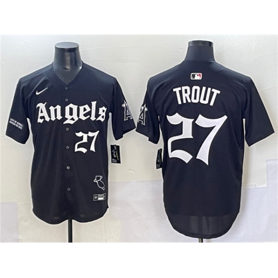 Men's Los Angeles Angels #27 Mike Trout Black 'Gothic Halo Edition' Vapor Limited Stitched Jersey