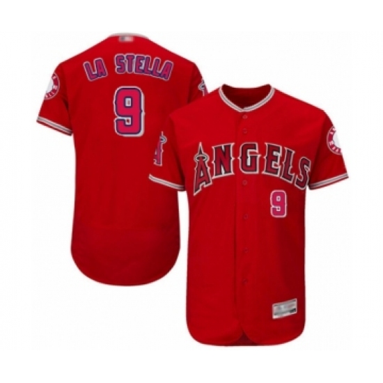 >Men's Los Angeles Angels of Anaheim #9 Tommy La Stella Red Alternate Flex Base Authentic Collection Baseball Jersey