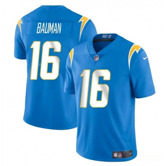 >Men's Los Angeles Chargers #16 Casey Bauman Blue 2024 Vapor Limited Football Stitched Jersey