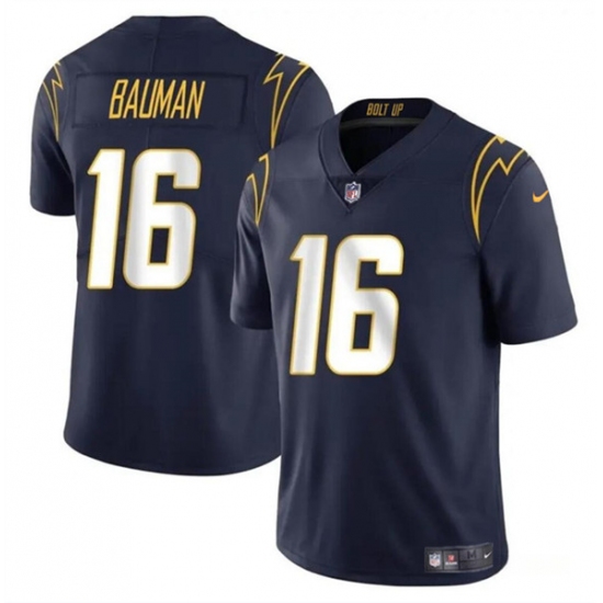 >Men's Los Angeles Chargers #16 Casey Bauman Navy 2024 Vapor Limited Football Stitched Jersey