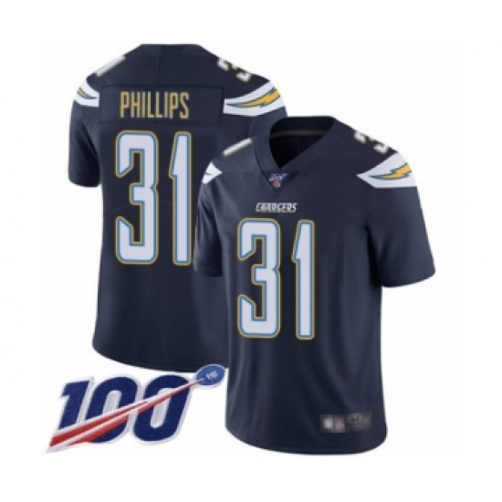 >Men's Los Angeles Chargers #31 Adrian Phillips Navy Blue Team Color Vapor Untouchable Limited Player 100th Season Football Jersey