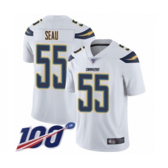 >Men's Los Angeles Chargers #55 Junior Seau White Vapor Untouchable Limited Player 100th Season Football Jersey