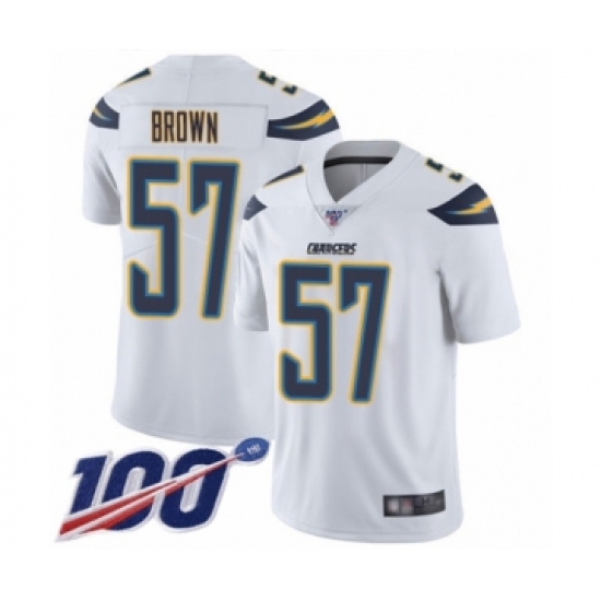 >Men's Los Angeles Chargers #57 Jatavis Brown White Vapor Untouchable Limited Player 100th Season Football Jersey