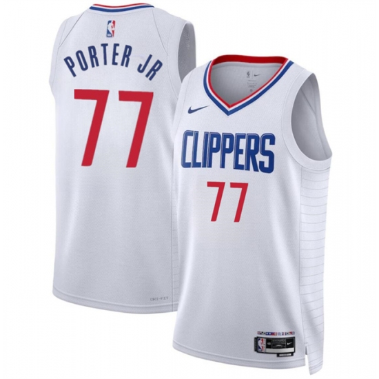 >Men's Los Angeles Clippers #77 Kevin Porter Jr White Association Edition Stitched Jersey