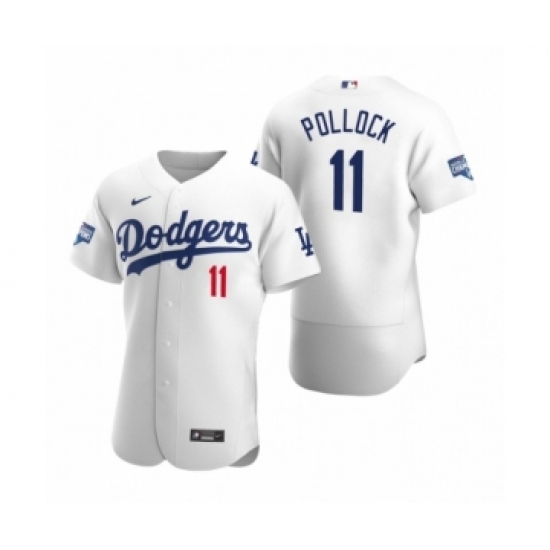 Men's Los Angeles Dodgers #11 A.J. Pollock White 2020 World Series Champions Authentic Jersey