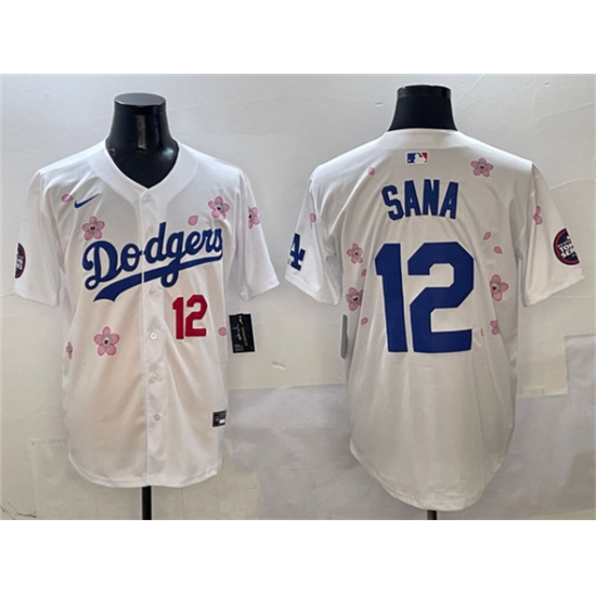 >Men's Los Angeles Dodgers #12 Sana White 2025 Tokyo Series Limited Stitched Baseball Jersey
