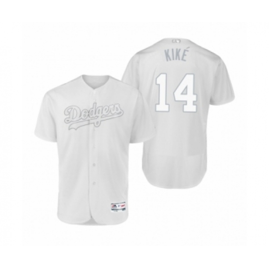 >Men's Los Angeles Dodgers #14 Enrique Hernandez Kiké White 2019 Players Weekend Authentic Jersey