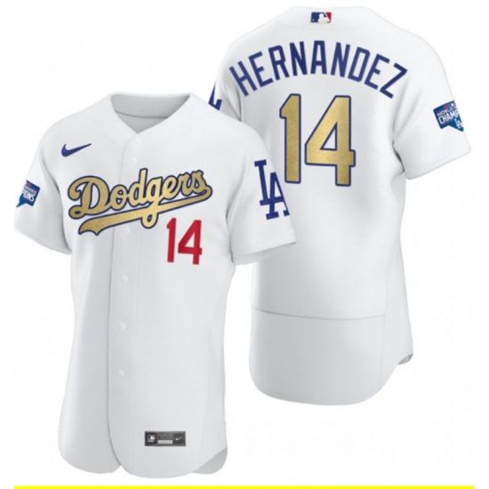 Men's Los Angeles Dodgers #14 Enrique Hernandez Nike White Authentic Golden Edition Jersey