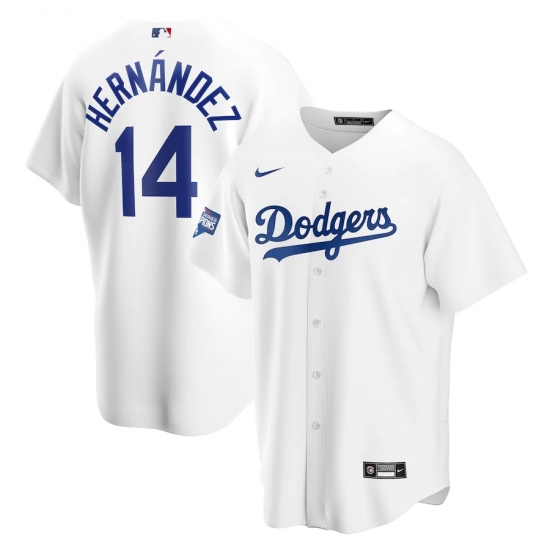 >Men's Los Angeles Dodgers #14 Enrique Hernández Nike White 2020 World Series Champions Home Patch Replica Player Jersey