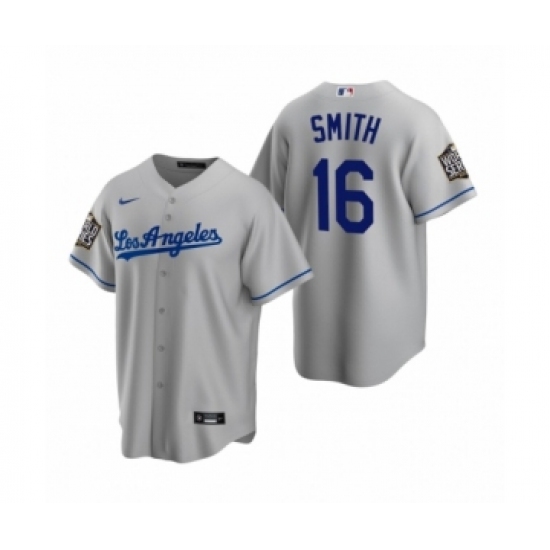 Men's Los Angeles Dodgers #16 Will Smith Gray 2020 World Series Replica Jersey