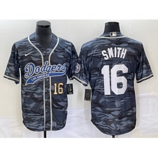 >Men's Los Angeles Dodgers #16 Will Smith Number Gray Camo Cool Base Stitched Baseball Jersey