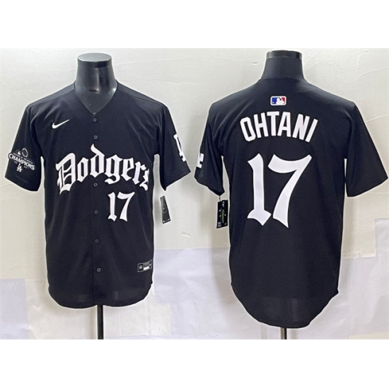 >Men's Los Angeles Dodgers #17 Shohei Ohtani Black 2025 LA Gothic Style With 2024 World Series Champions Vapor Premier Limited Stitched Baseball Jersey