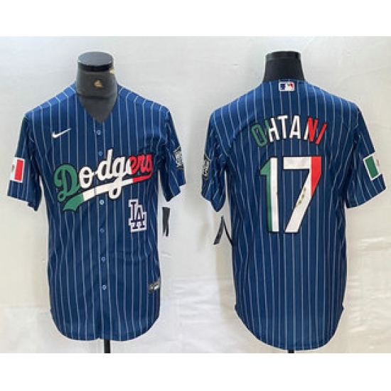 Men's Los Angeles Dodgers #17 Shohei Ohtani Mexico Blue Pinstripe Cool Base Stitched Jersey