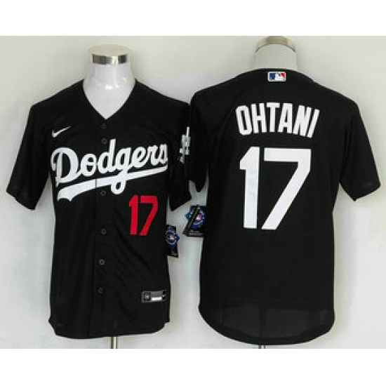 >Men's Los Angeles Dodgers #17 Shohei Ohtani Number Black Stitched Cool Base Nike Jersey