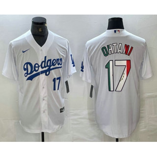 Men's Los Angeles Dodgers #17 Shohei Ohtani Number Mexico White Cool Base Stitched Jerseys