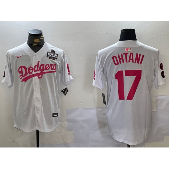 Men's Los Angeles Dodgers #17 Shohei Ohtani Number White Pink 2024 World Series Limited Cool Base Stitched Jerseys