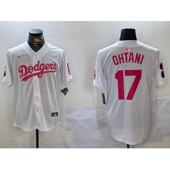 >Men's Los Angeles Dodgers #17 Shohei Ohtani Number White Pink Limited Cool Base Stitched Jersey