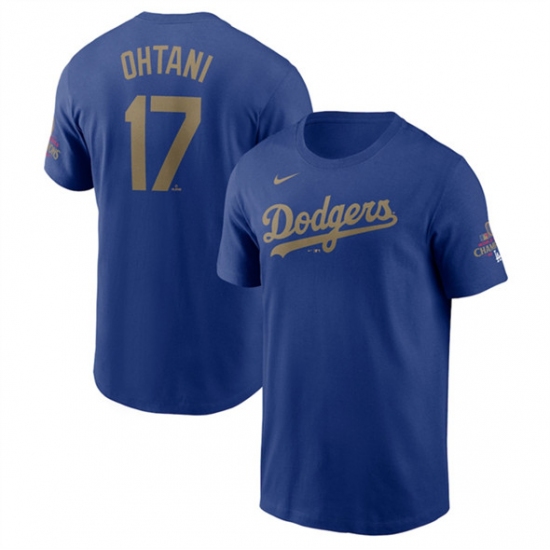 >Men's Los Angeles Dodgers #17 Shohei Ohtani Royal 2025 Gold Collection Name & Number T-Shirt
