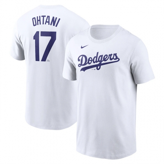 >Men's Los Angeles Dodgers #17 Shohei Ohtani White 2024 Fuse Name & Number T-Shirt