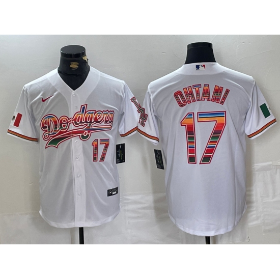 >Men's Los Angeles Dodgers #17 Shohei Ohtani White Mexico Cool Base Stitched Jersey