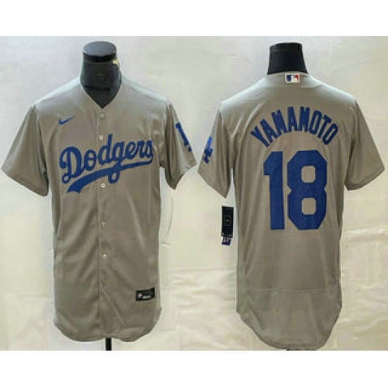 >Men's Los Angeles Dodgers #18 Yoshinobu Yamamoto Grey Stitched Flex Base Nike Jersey