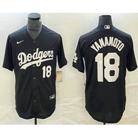 >Men's Los Angeles Dodgers #18 Yoshinobu Yamamoto Number Black Turn Back The Clock Stitched Cool Base Jersey1
