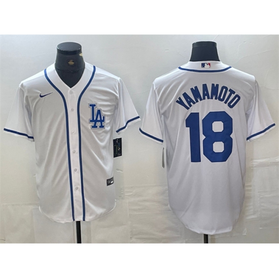 Men's Los Angeles Dodgers #18 Yoshinobu Yamamoto White Cool Base Stitched Baseball Jersey