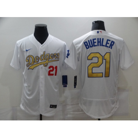 Men's Los Angeles Dodgers #21 Walker Buehl Olive Gold Authentic Jersey