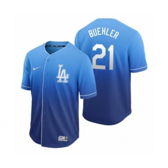 >Men's Los Angeles Dodgers #21 Walker Buehler Royal Fade Nike Jersey