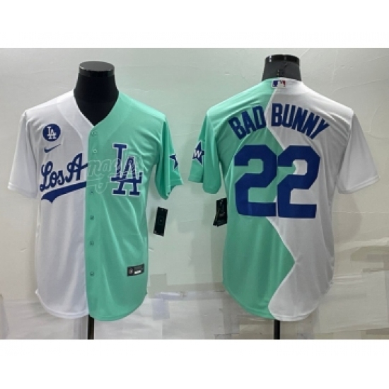Men's Los Angeles Dodgers #22 Bad Bunny White Green Two Tone 2022 Celebrity Softball Game Cool Base Jersey