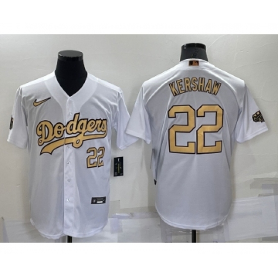 >Men's Los Angeles Dodgers #22 Clayton Kershaw Number White 2022 All Star Stitched Cool Base Nike Jersey