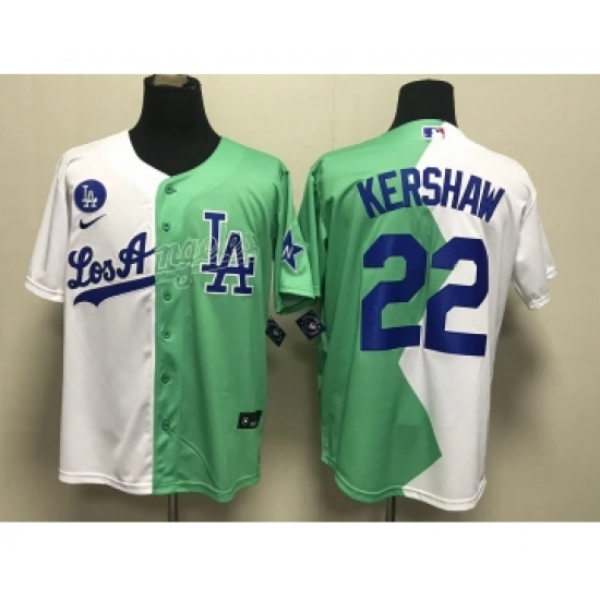 >Men's Los Angeles Dodgers #22 Clayton Kershaw White Green 2022 Celebrity Softball Game Cool Base Jersey