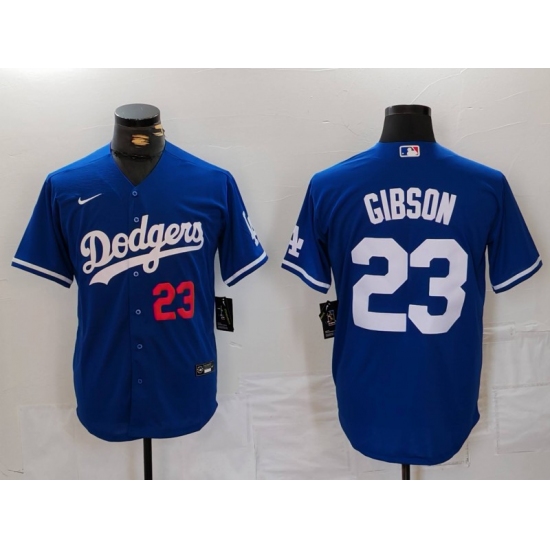 Men's Los Angeles Dodgers #23 Kirk Gibson Number Blue Cool Base Stitched Jersey