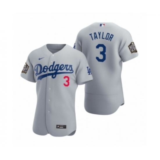 Men's Los Angeles Dodgers #3 Chris Taylor Gray 2020 World Series Champions Road Authentic Jersey