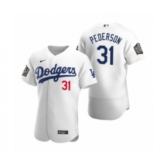 >Men's Los Angeles Dodgers #31 Joc Pederson Nike White 2020 World Series Authentic Jersey