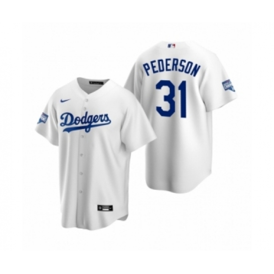 Men's Los Angeles Dodgers #31 Joc Pederson White 2020 World Series Champions Replica Jersey