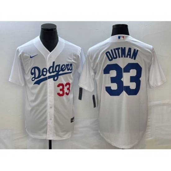 >Men's Los Angeles Dodgers #33 James Outman Number White Cool Base Stitched Jersey